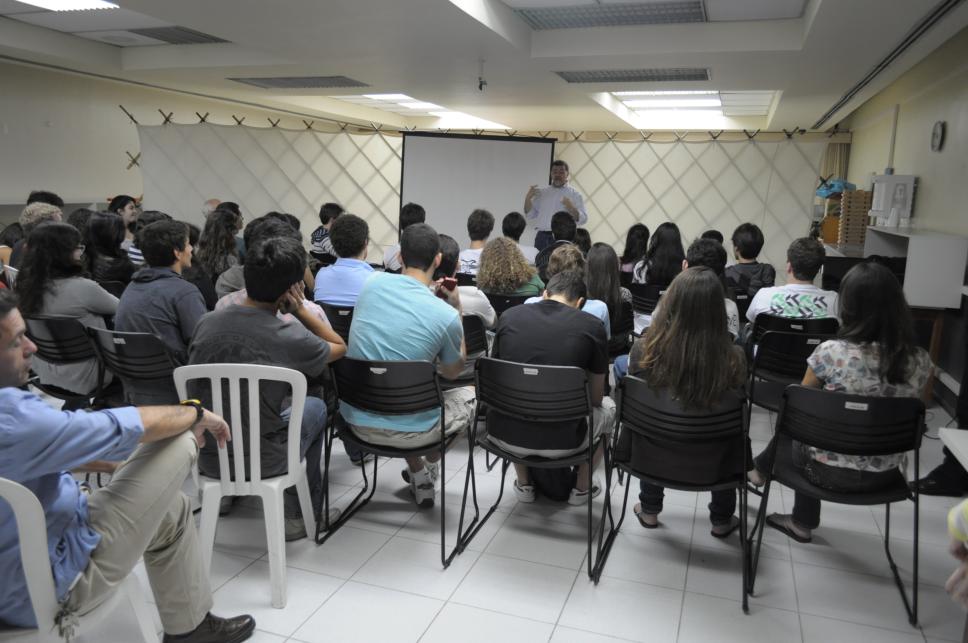 Estudantes do Ensino Médio participando de palestra de encerramento do projeto PUC por Um Semestre.