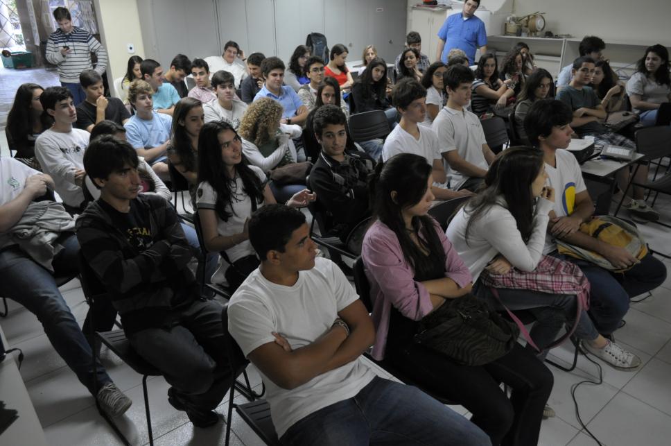 Estudantes do Ensino Médio participando do encerramento do projeto PUC por Um Semestre.