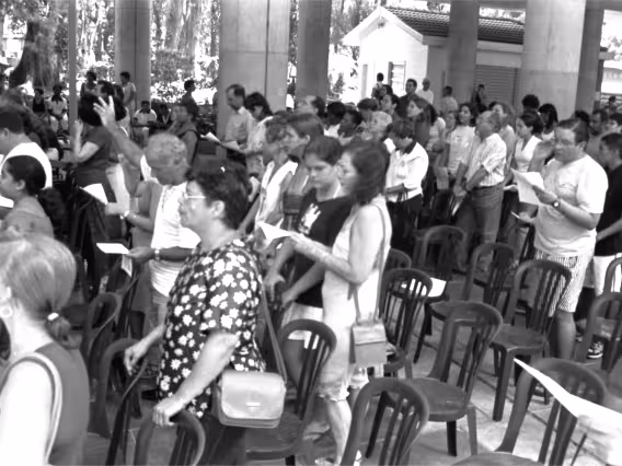 Missa ocorrida nos pilotis no Natal de 2000, para funcionários e familiares.