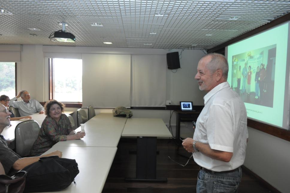 Professor homenageado com discursos e apresentações de fotos no Decacato do CTC.