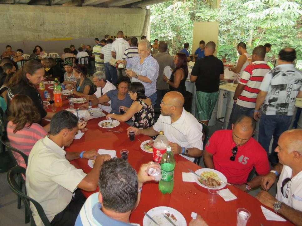 Funcionários durante almoço em confraternização de Natal da prefeitura.