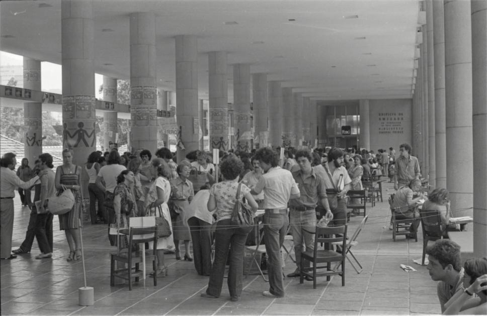 Alunos ocupam os pilotis em dia de eleição para o DCE da PUC-Rio.