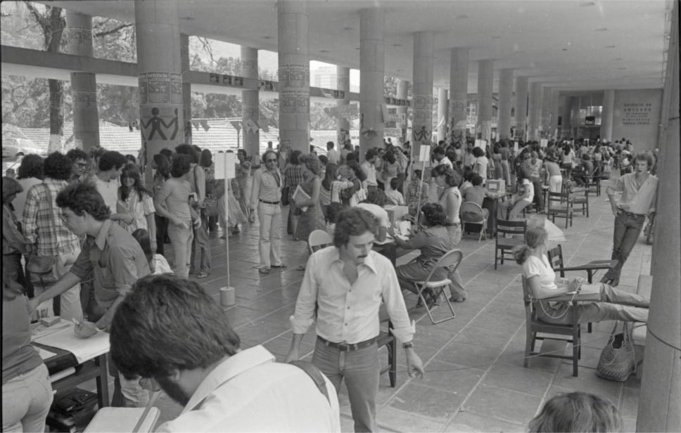 Ao lado da placa branca de camisa social aberta e óculos escuros: prof. Antonio Idaló (COM); no lado direito do 3ª piloti do meio, de bigode e óculos: prof. Antonio Edmilson Martins Rodrigues (HIS)