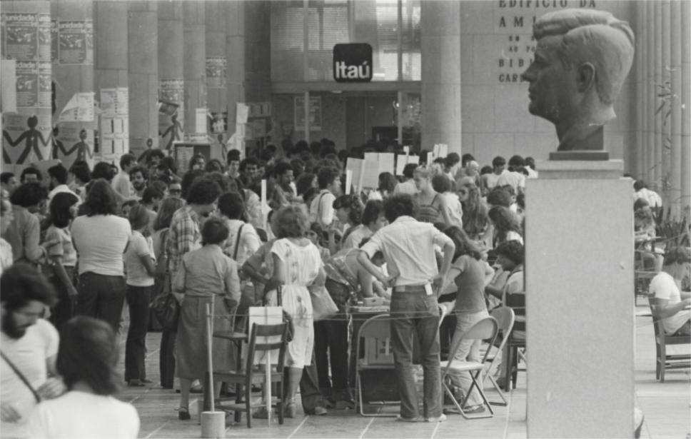Grande movimentação de alunos no pilotis durante eleições dos diretórios estudantis.