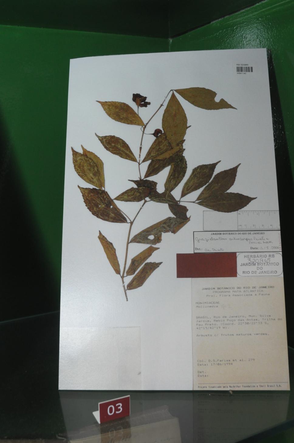 Fac-símile de um exemplar typus do gênero Grazielanthus arkiocarpus, dedicado à Dra. Graziela. Estante "O fazer científico".