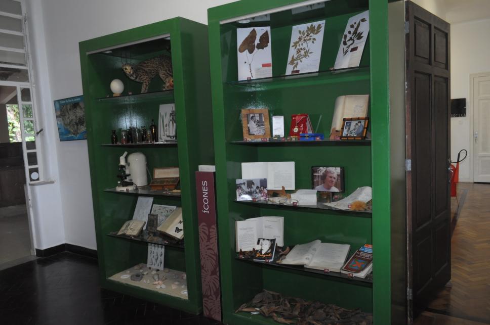 Estantes "O fazer científico" e "Dra. Graziela Maciel Barroso, cientista e mestra".