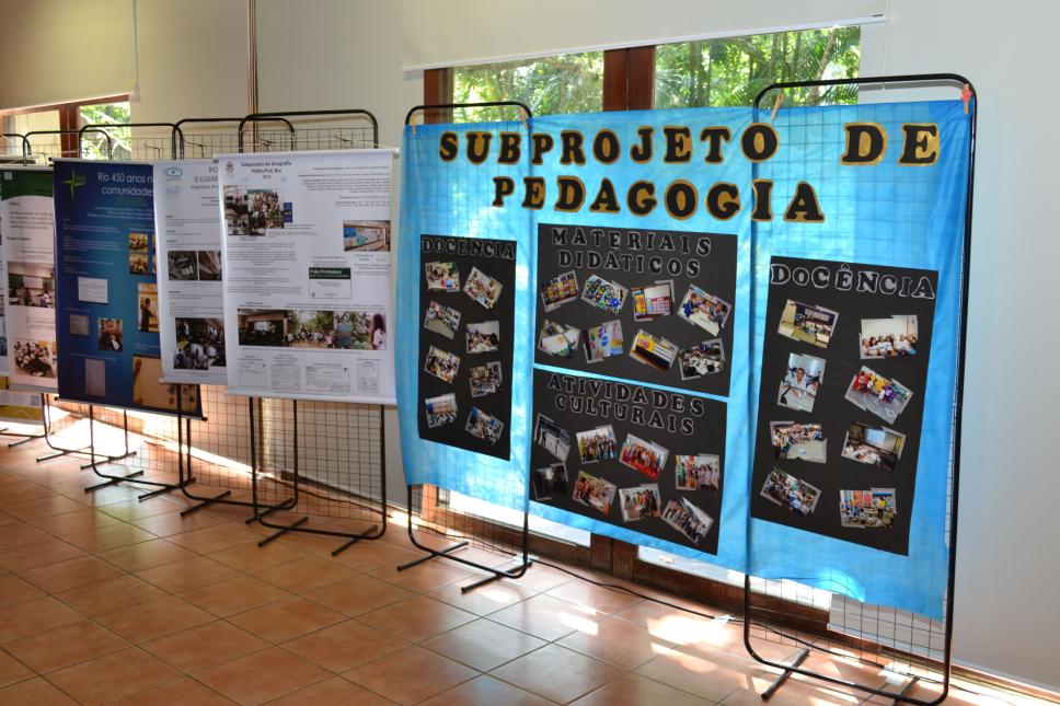 Cartazes e posteres sobre os trabalhos realizados nas escolas.
