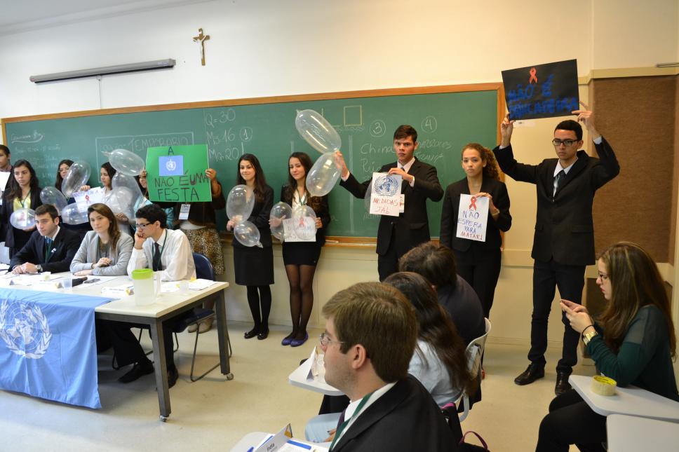 Estudantes fazem intervenção com alertas sobre a aids durante debate no MIRIN.