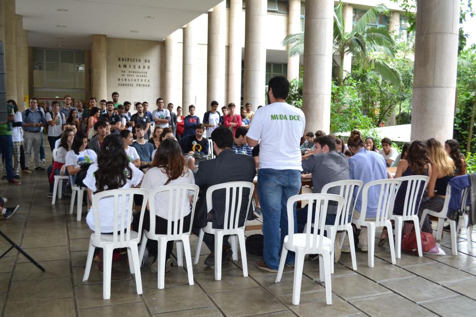 Alunos e membros de chapas participantes do debate para as eleições do DCE.