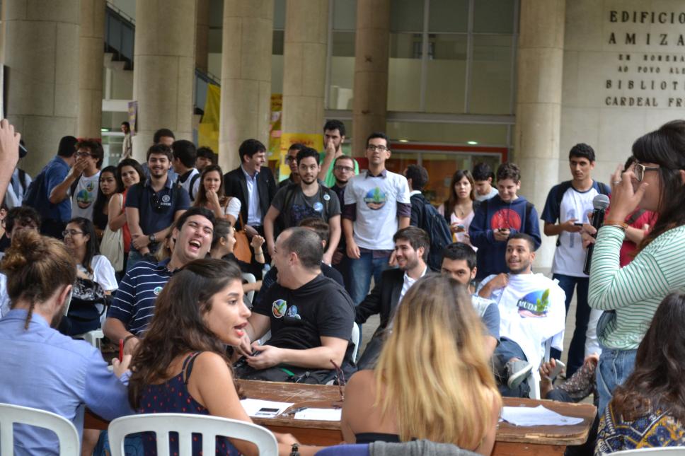 Alunos e membros de chapas participantes do debate para as eleições do DCE.