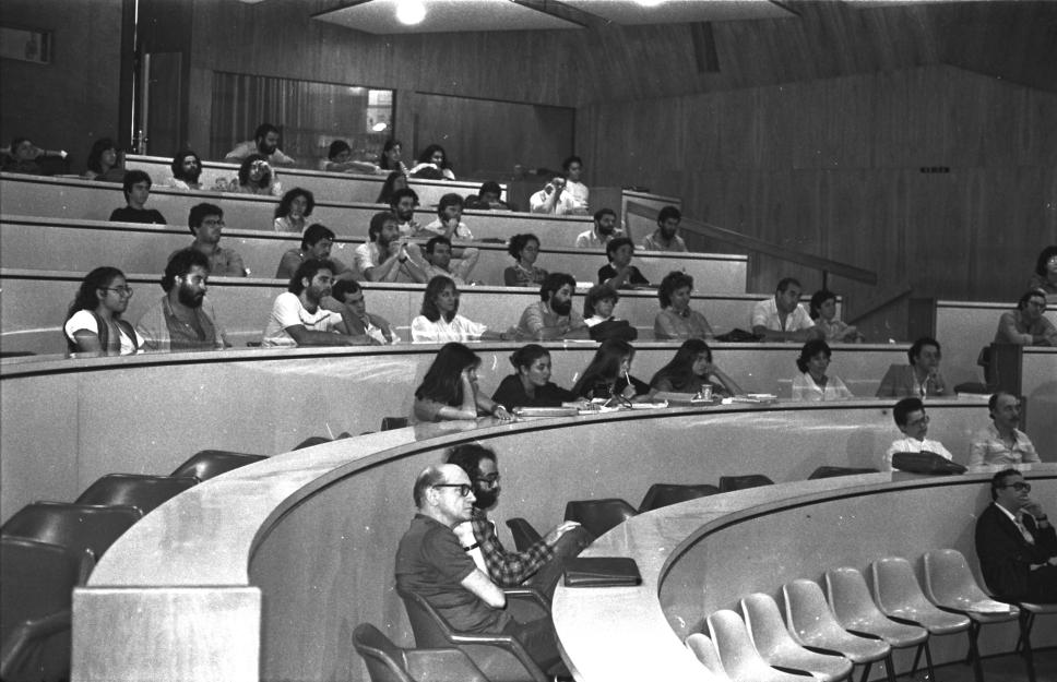Evento possivelmente realizado pelo Departamento de Comunicação, por conta dos professores presentes na palestra.
