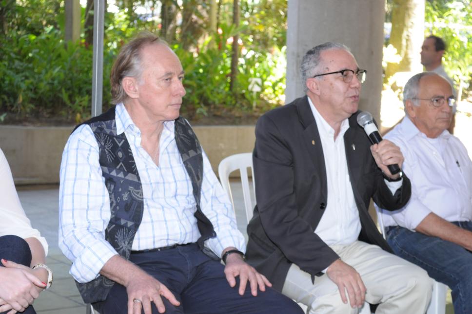 Da esq. para dir.: Carlos Minc (Secretário de Estado do Meio Ambiente do Rio de Janeiro), prof. pe. Josafá Carlos de Siqueira S.J. (BIO, Reitor) e o prof. Augusto Sampaio (COM, Vice-Reitor para Assuntos Comunitários)