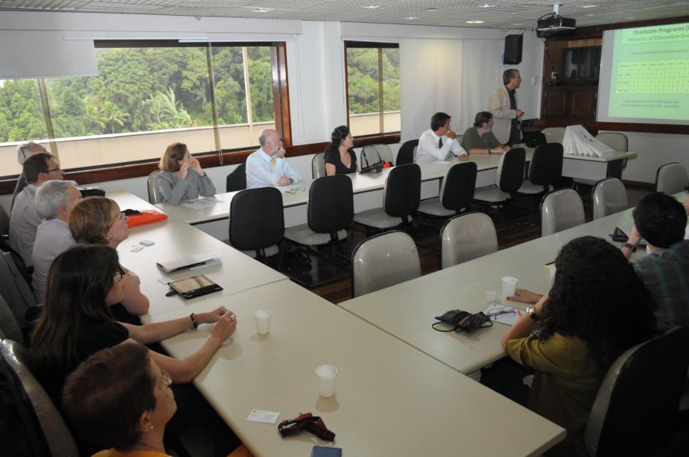 Professor Reinaldo Calixto apresenta balanço dos cursos da PUC-Rio para a delegação da Queensland University.