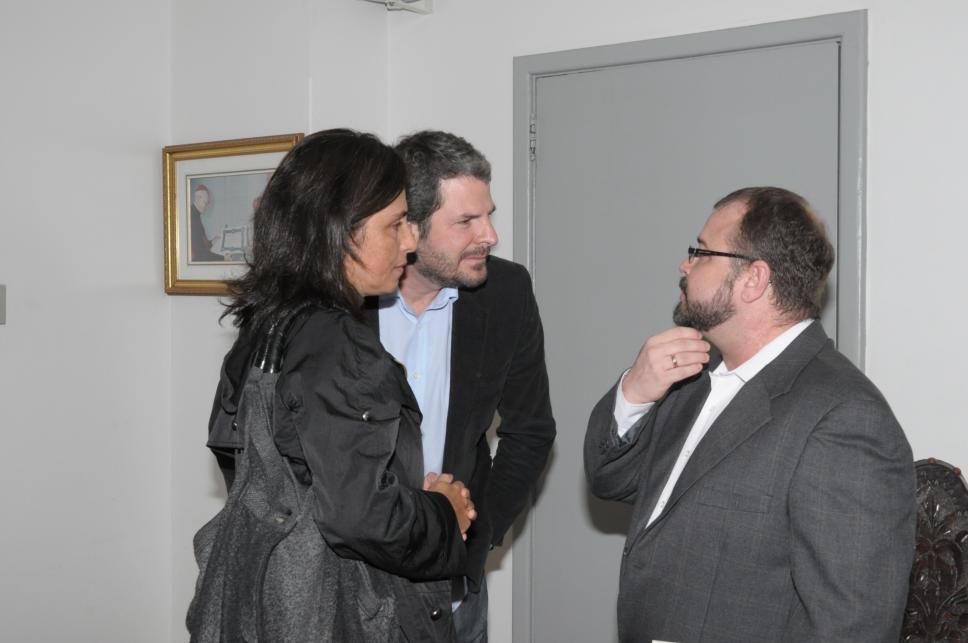 Da esq. para dir.: n.i., prof. Marcelo Motta de Freitas (GEO) e o prof. Augusto César Pinheiro da Silva (GEO)