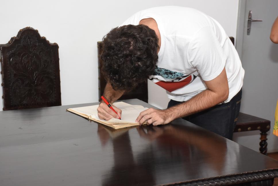 Aluno assina a ata de posse na cerimônia.