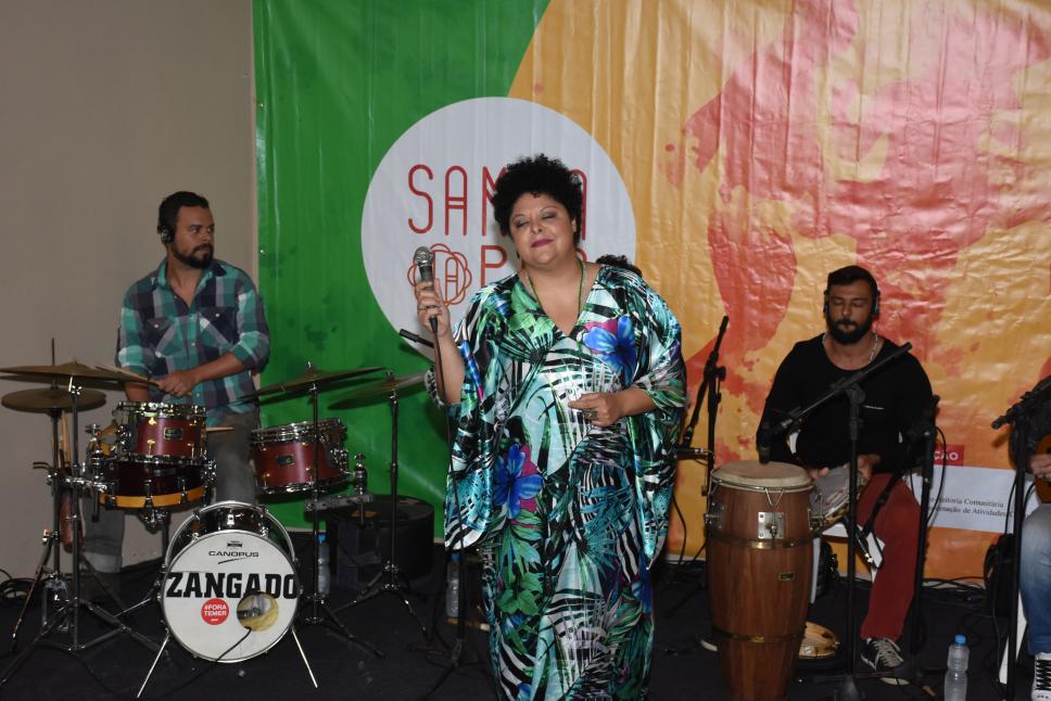 Fabiana Cozza e banda durante apresentação na roda de samba.