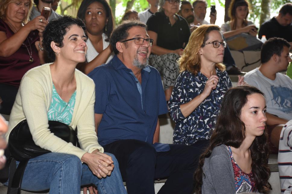 Da esq. para dir.: profa. Luisa Severo Buarque de Holanda (FIL), prof. Júlio Cesar Valladão Diniz (LET, Decano do CTCH) e Márcia Rinaldi de Mattos (IEAHu)