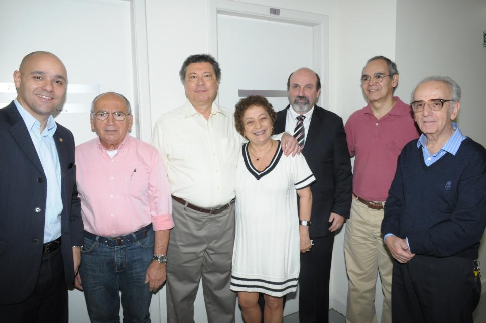 Professores reunidos após a cerimônia de posse do professor Jesus Landeira-Fernandez como diretor do Departamento de Psicologia.