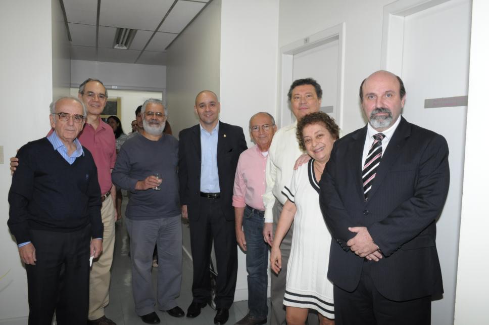 Da esq. para dir.: prof. pe. Pedro Magalhães Guimarães Ferreira S.J. (FPLF), n.i., prof. Adair Leonardo Rocha (COM), n.i., prof. Augusto Sampaio (Augusto Luiz Duarte Lopes Sampaio) (COM, Vice-Reitor para Assuntos Comunitários), prof. Luiz Carlos Scavarda do Carmo (FIS, Vice-Reitor para Assuntos Administrativos), profa. Terezinha Féres-Carneiro (PSI), prof. Jesus Landeira-Fernandez (PSI)