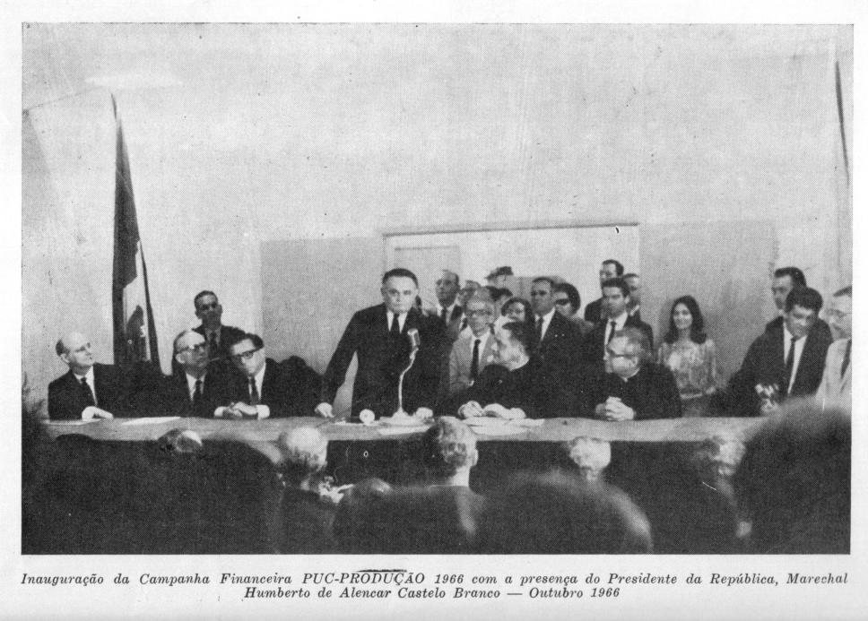 Inauguração da Campanha Financeira PUC-PRODUÇÃO 1966, com a presença do Presidente da República, Marechal Humberto de Alencar Castelo Branco, e do Reitor pe. Laércio S.J..