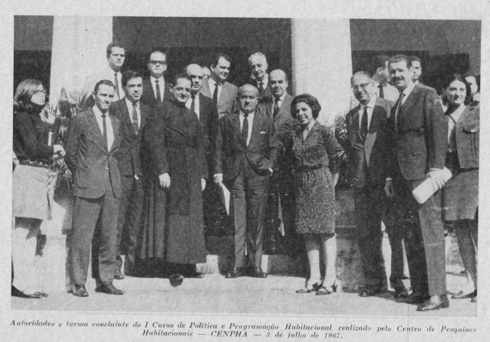 Autoridades e professores com a turma concluinte do primeiro curso de Política e Programação Habitacional realizado pelo Centro de Pesquisas Habitacionais (CENPHA)