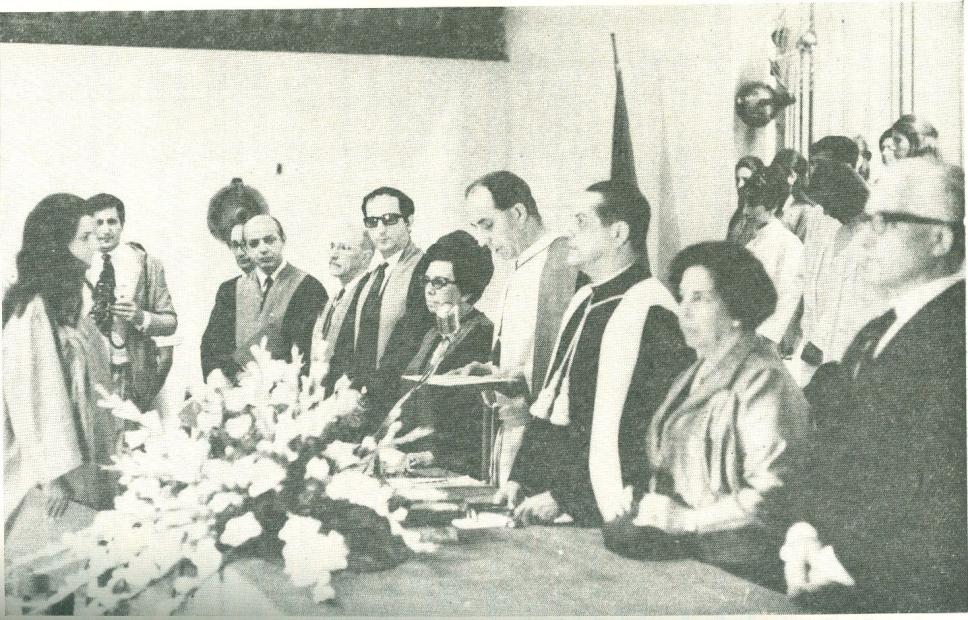 Aspecto da mesa na Colação de Grau da Faculdade de Filosofia.