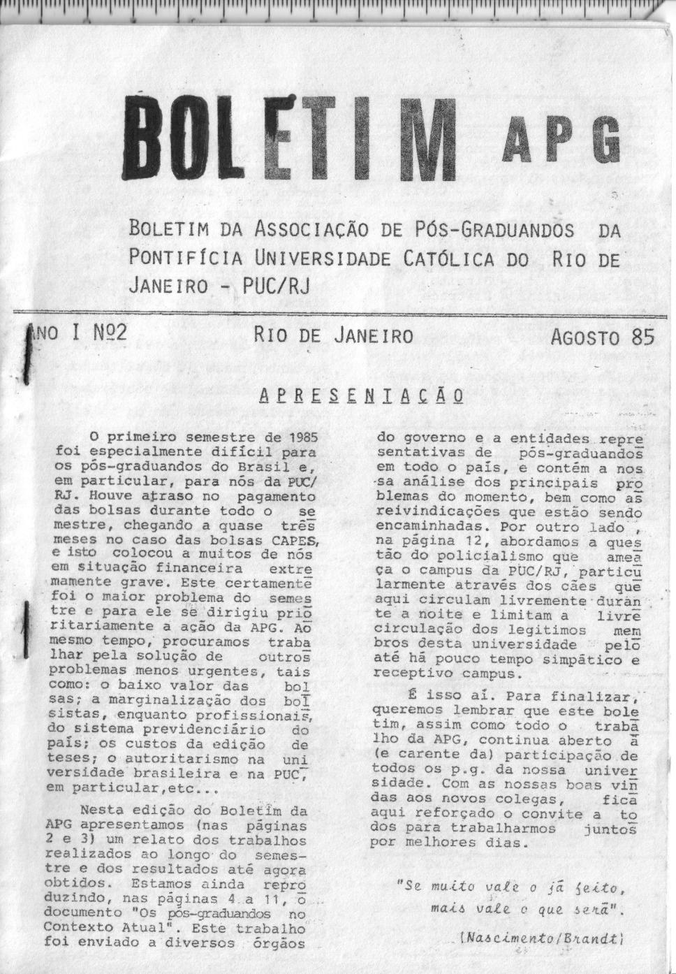 Capa - Apresentação. Sobre atrasos nos pagamentos de bolsas e um balanço das atividades da APG no semestre.