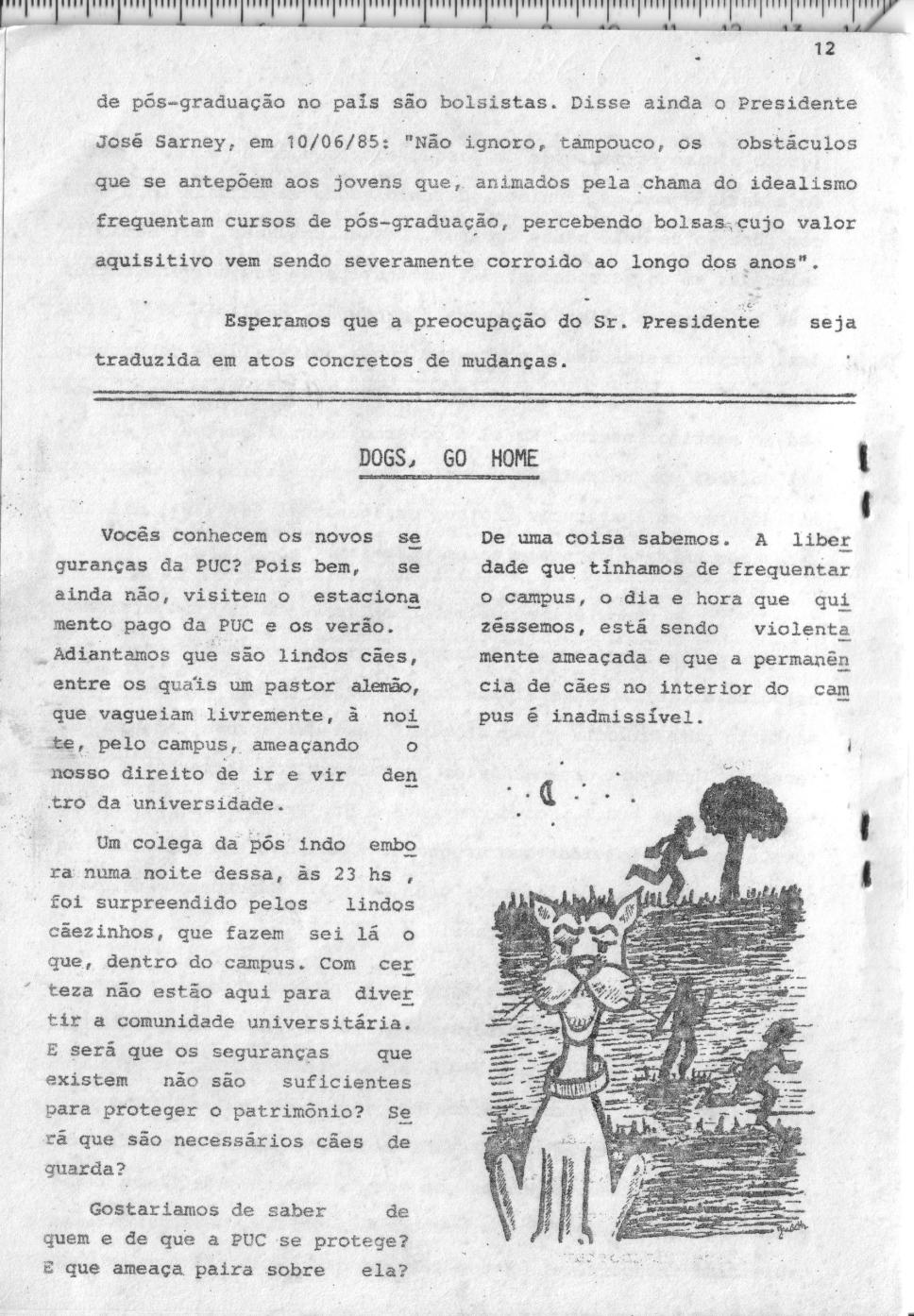 p.12 - Dogs, go home. Sobre os cães soltos à noite no estacionamento.