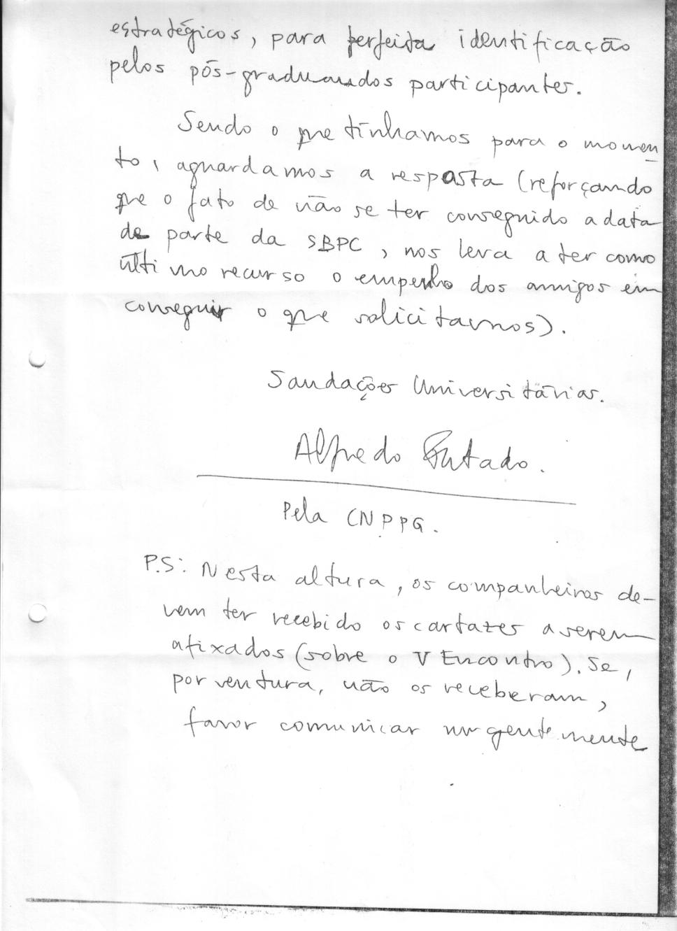 Carta de Alfredo Furtado da Coordenação Nacional Provisória de Pós-Graduação