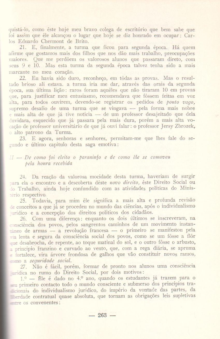 Continuação do discurso de paraninfo pronunciado pelo prof. Nélio Reis aos diplomandos da Faculdade de Direito.