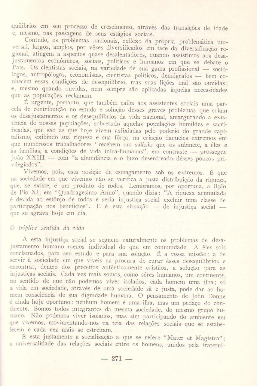 Continuação do discurso de paraninfo pronunciado pelo prof. Manuel Diegues Júnior aos diplomandos de Serviço Social.