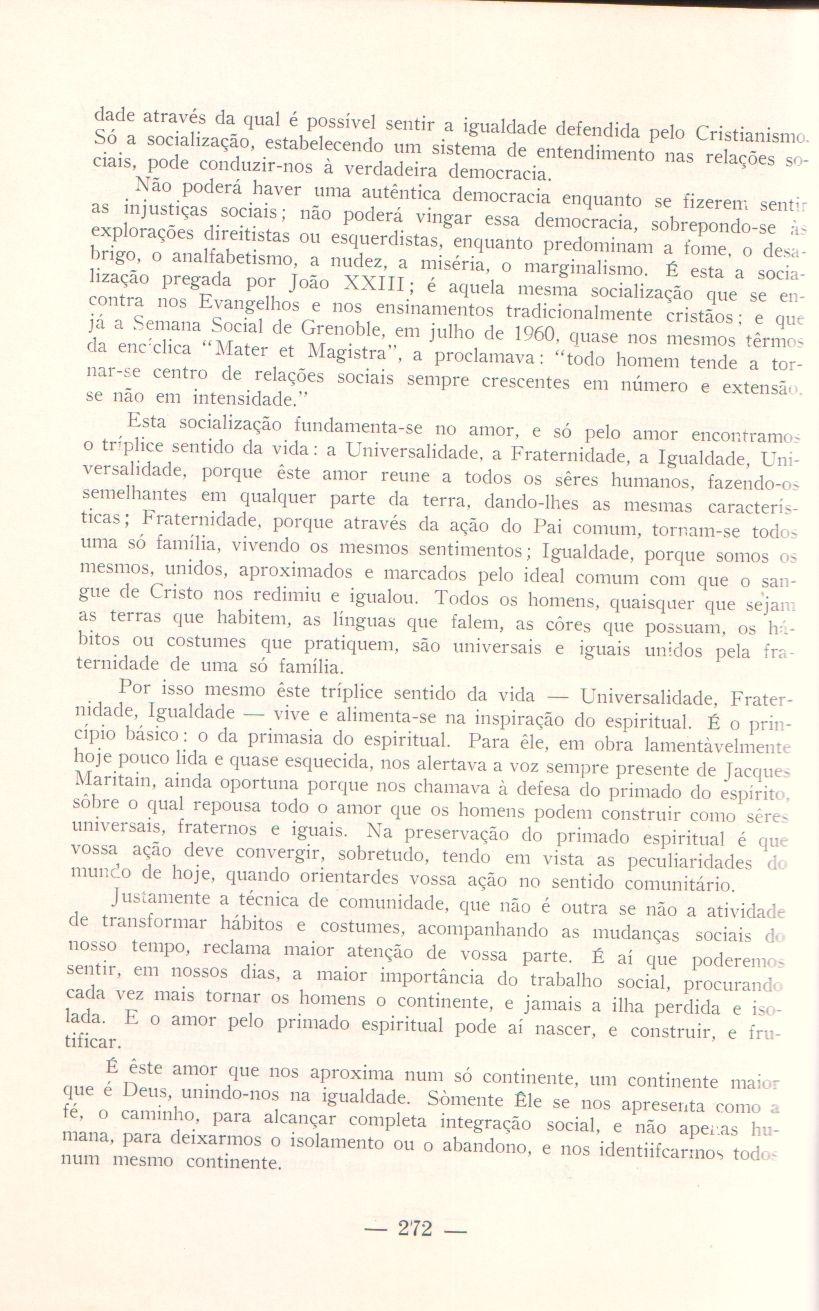 Continuação do discurso de paraninfo pronunciado pelo prof. Manuel Diegues Júnior aos diplomandos de Serviço Social.