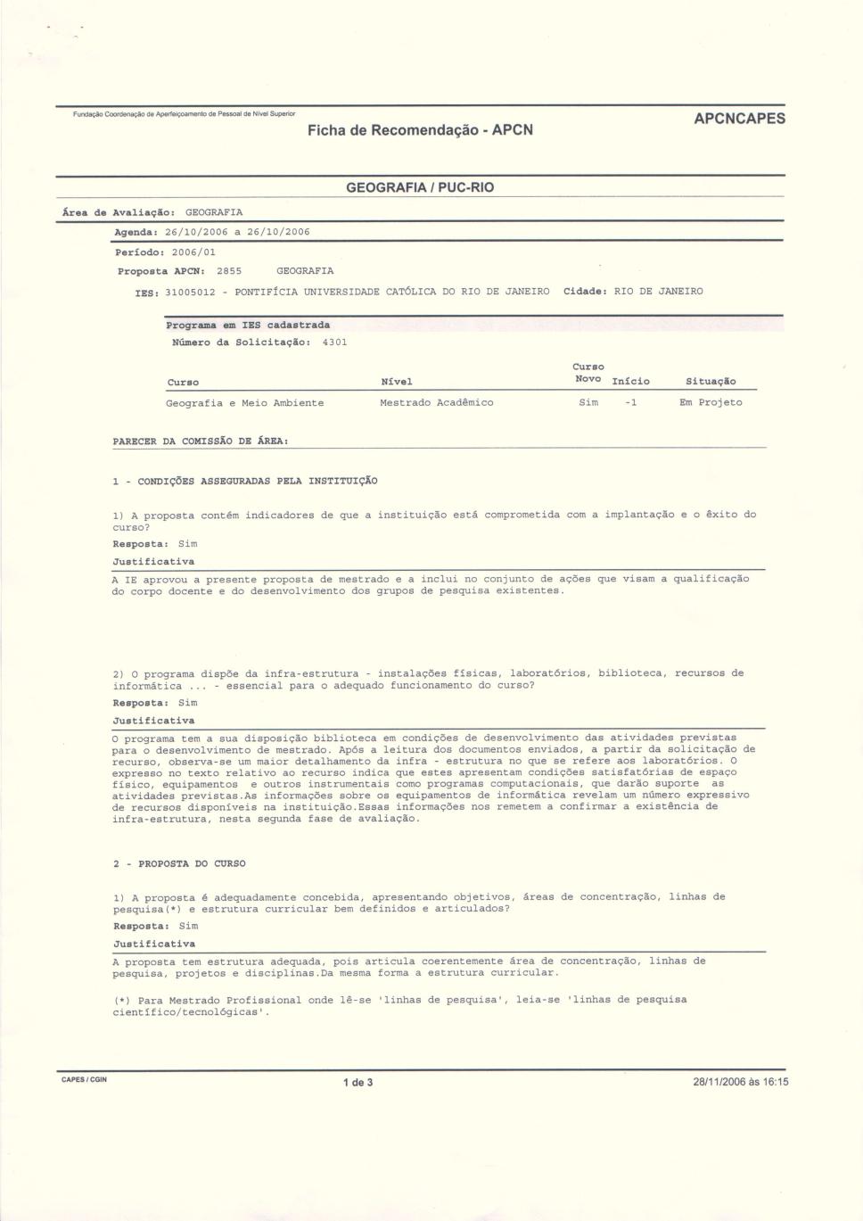 Ficha de recomendação - APCN - CAPES - Sobre o curso de mestrado em Geografia. Condições asseguradas pela Instituição, Proposta do curso.