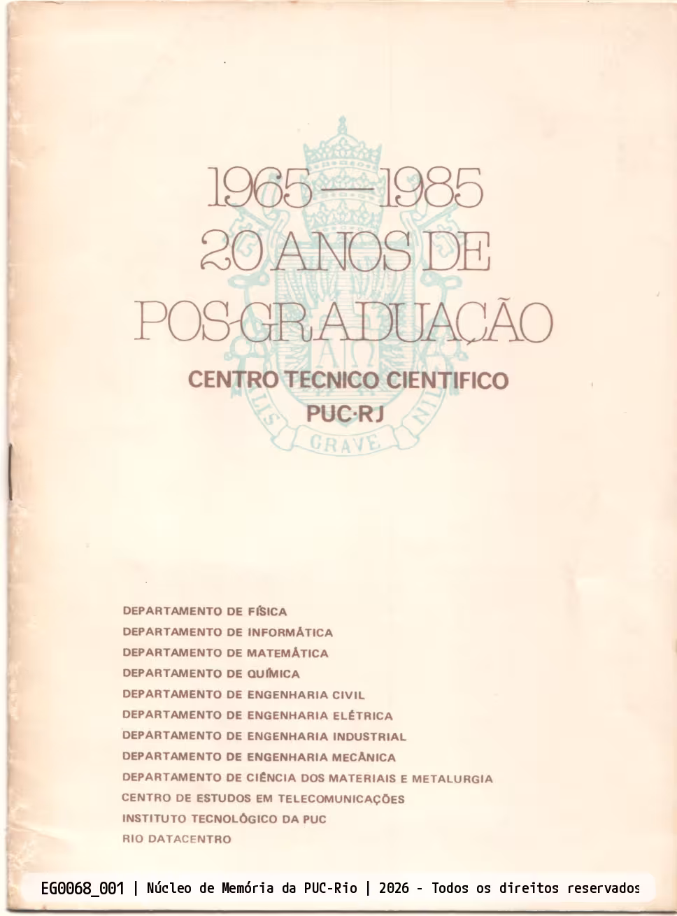 1965-1985 - 20 anos da Pós-Graduação - Centro Técnico Científico PUC-RJ
