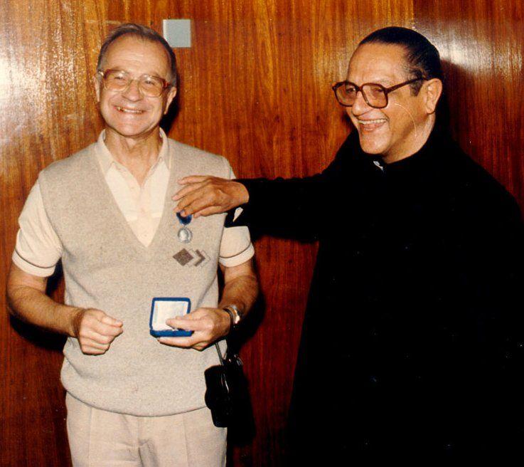O reitori pe. Laércio Dias de Moura S.J. entrega medalha ao Prof. Boris L'vov.