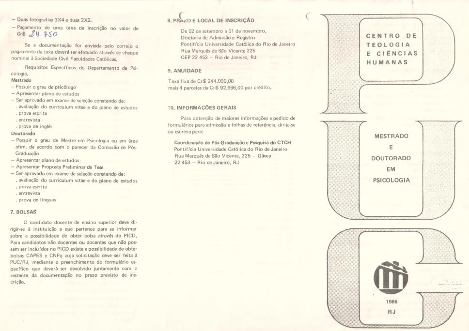 Folder com informações sobre o Mestrado e Doutorado em Psicologia.