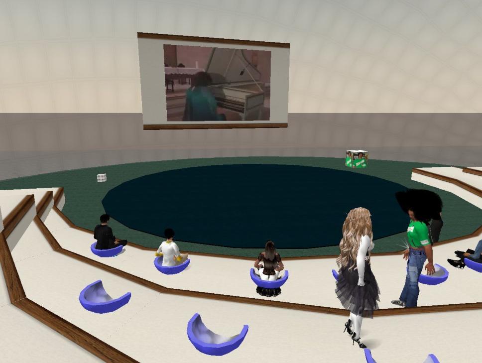 Imagem do concerto de Rosana Lanzelotte transmitida pelo Second Life. Evento presencial na Igreja do Sagrado Coração de Jesus.