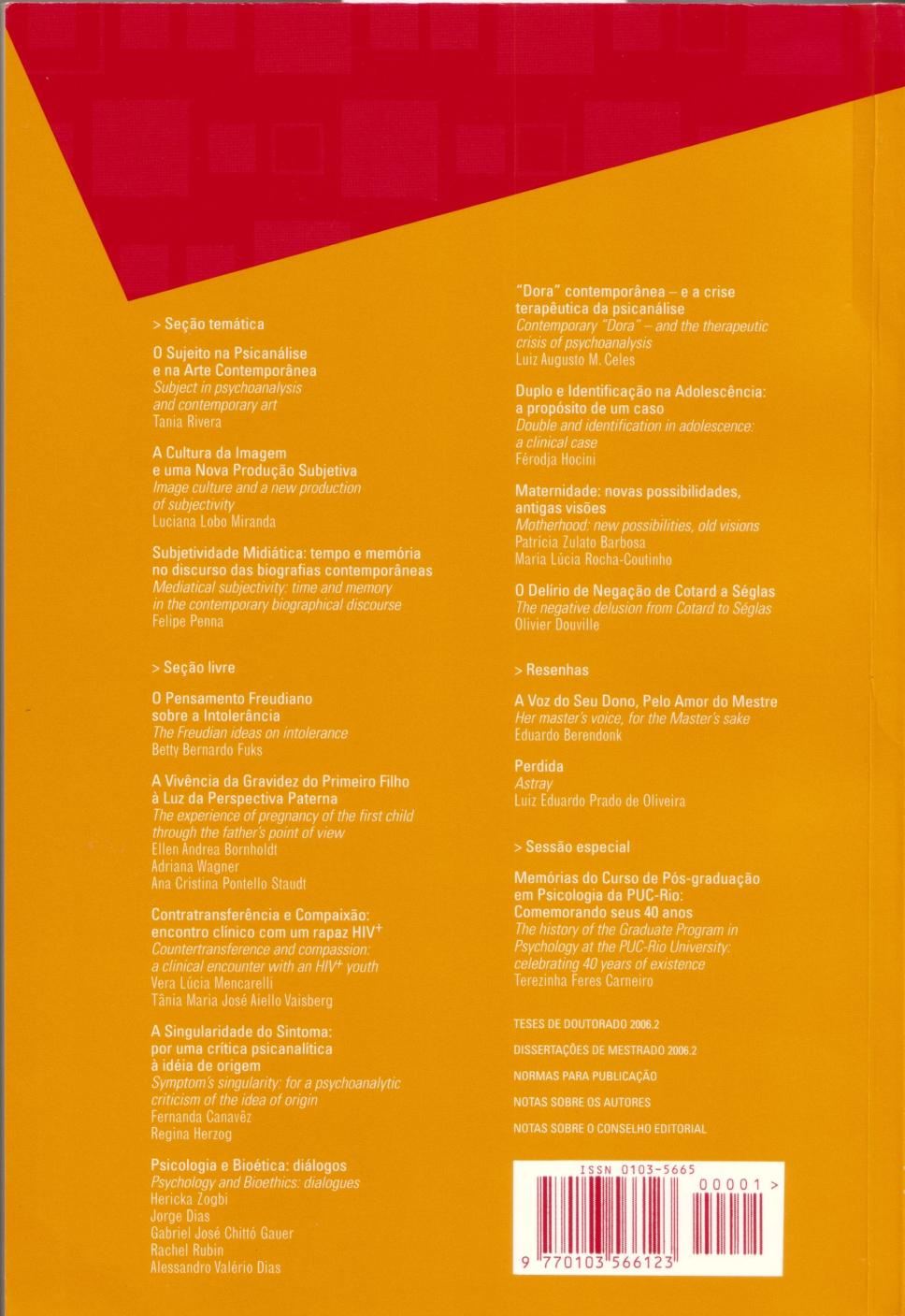 Contracapa da Revista Psicologia Clínica 19.1 - arte, subjetividade e mídia.