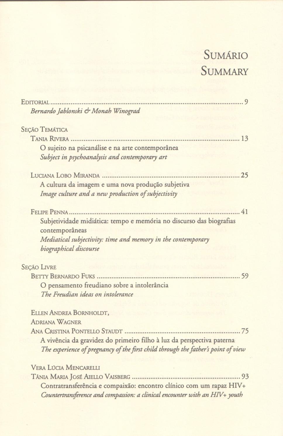 profa. Monah Winograd (PSI), Tania Rivera, Luciana Lobo Miranda, Felipe Pena, Betty Bernardo Fuks, Ellen Andrea Bornholdt, Adriana Wagner, Ana Cristina Pontello Staudt, Tania Maria José Aiello Vaisberg