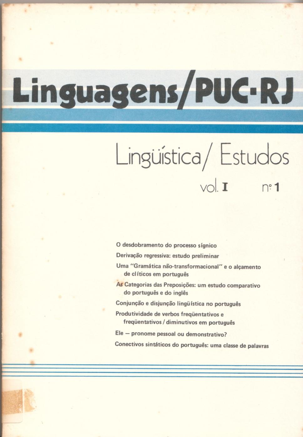 Linguagens / PUC-RJ - Lingüística / Estudos Vol. 1 No. 1