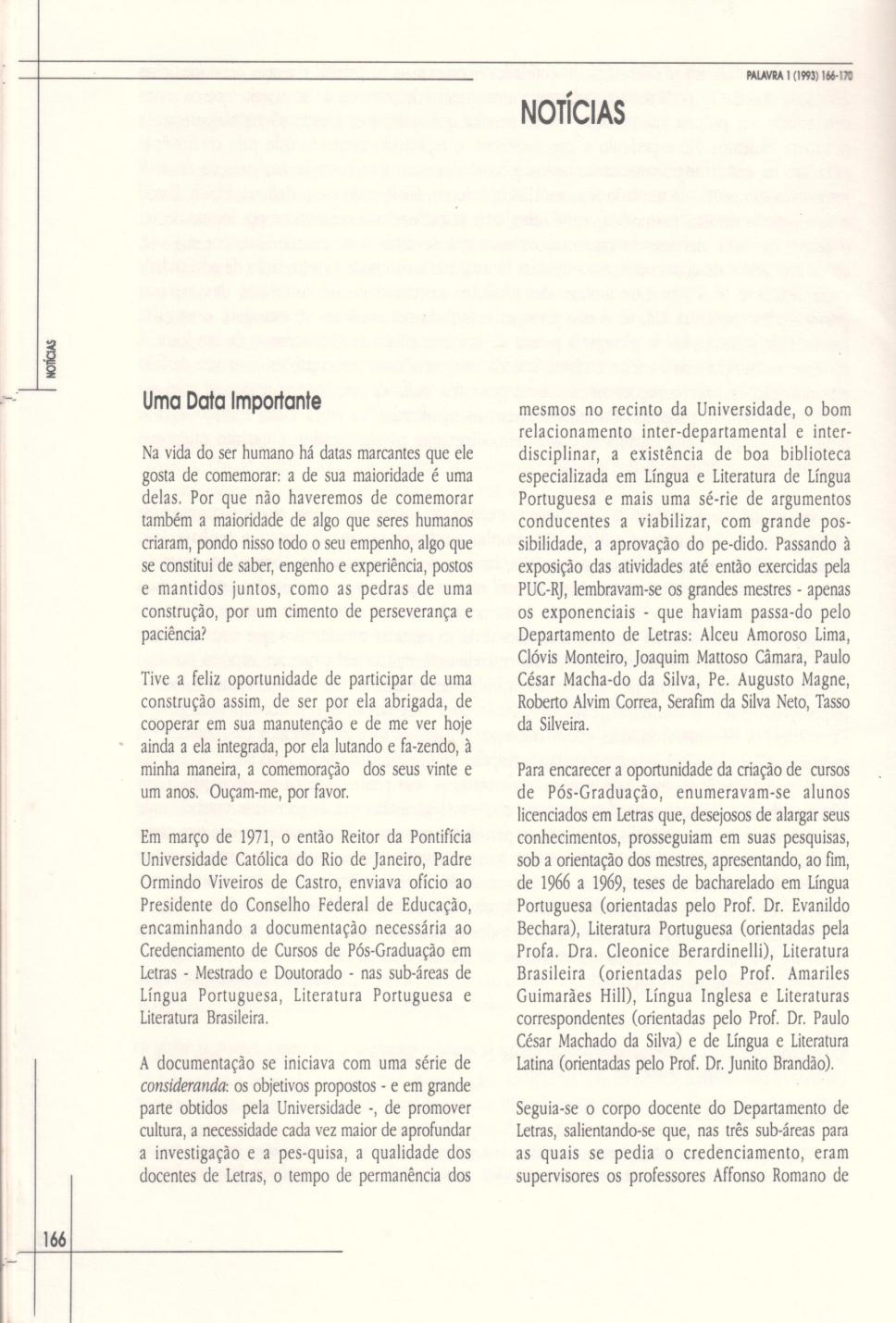 Notícias - Uma Data importante - Revista Palavra - No. 1
