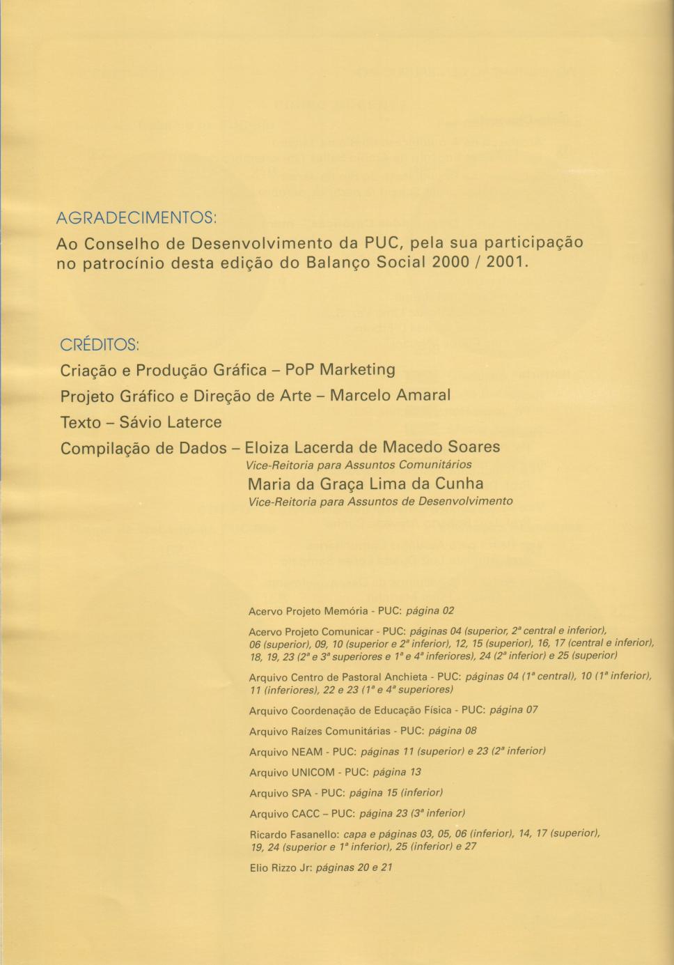 Agradecimentos / Créditos - Balanço Social 2000 / 2001 - PUC-Rio