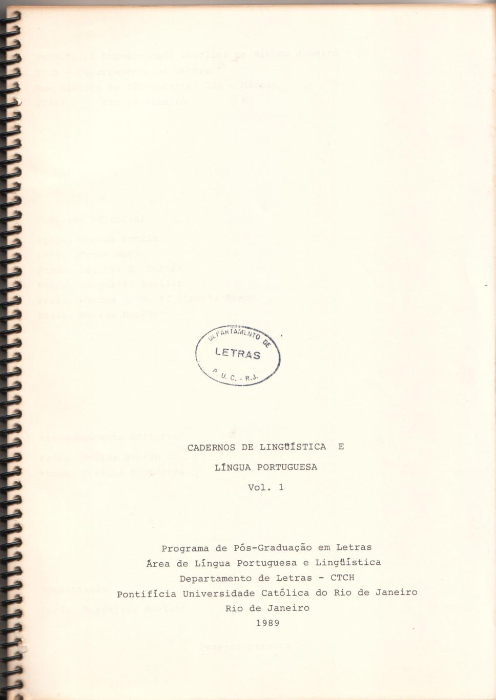 Cadernos de Lingüística e Língua Portuguesa Vol. 1
