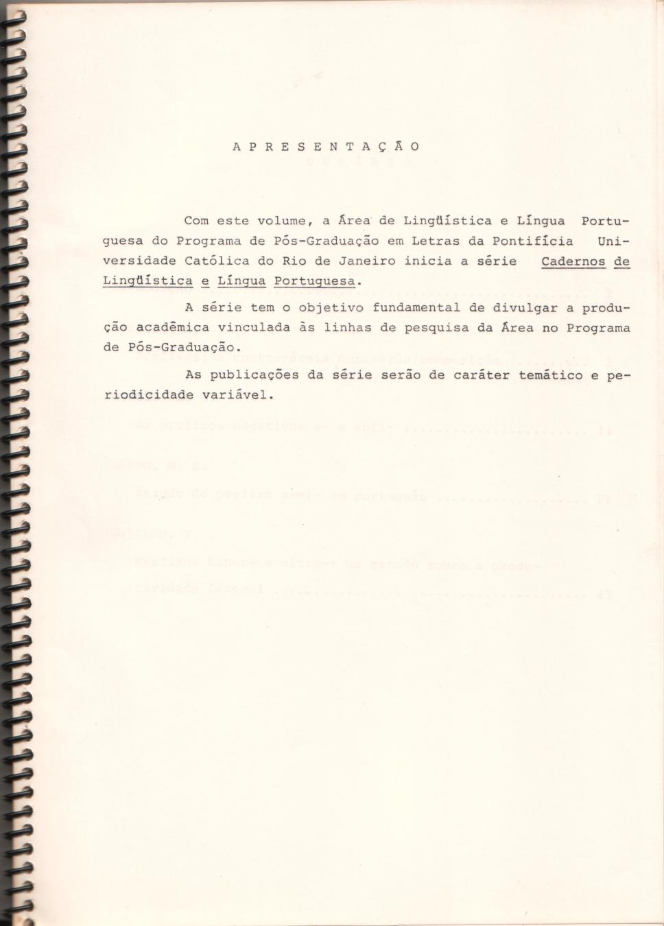 Apresentação - Cadernos de Lingüística e Língua Portuguesa Vol. 1