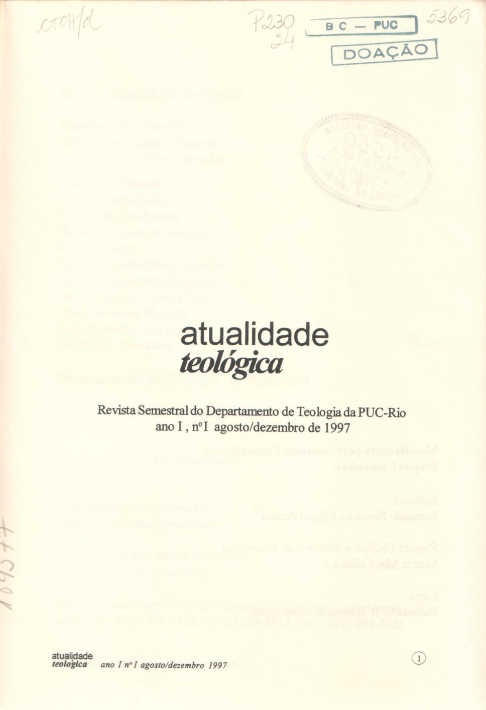 Revista Semestral do Departamento de Teologia da PUC-Rio, ano I, no. I, agosto/dezembro de 1997. Exemplar da Biblioteca Central.