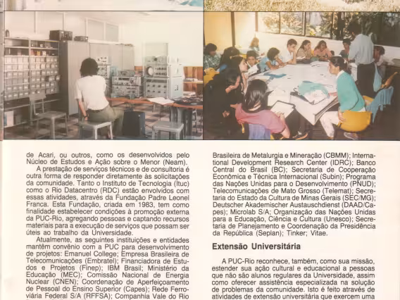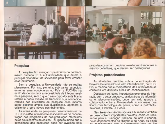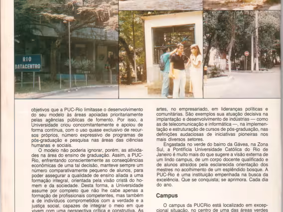Revista comemorativa dos 50 anos da PUC-Rio. Descreve a fundação da Universidade, o seu campus, a sua estrutura interna, seus centros e os projetos de pesquisa. Possui várias ilustrações e textos em português e inglês.