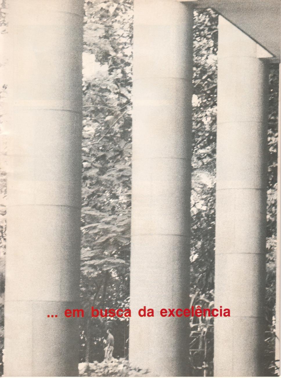 Página com foto dos pilotis e o texto "...em busca da excelência".