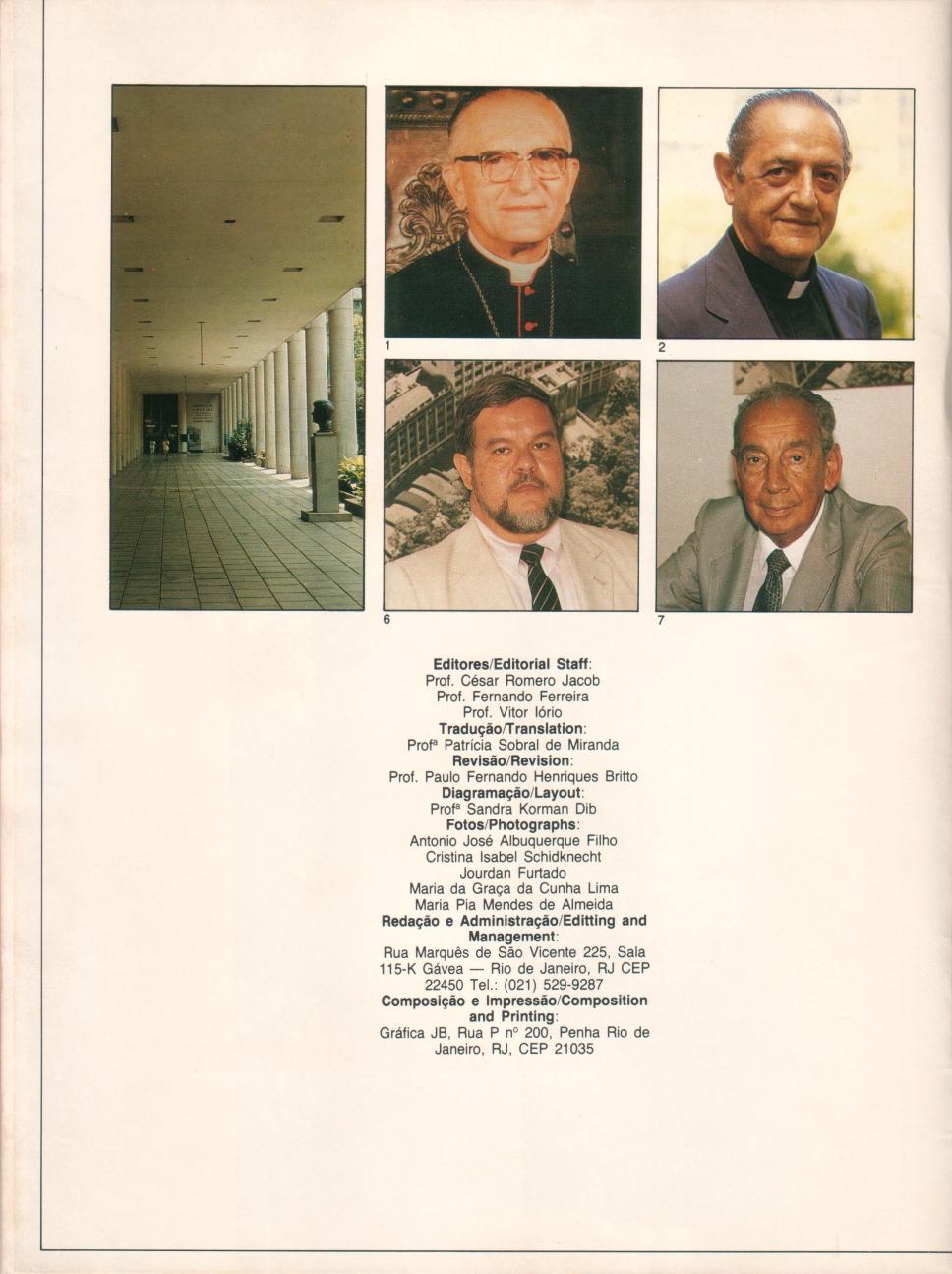 Expediente da revista: editores, professores César Romero (COM), Ferrnando Ferreira e Vitor Iório. Fotos dos pilotis do Edifício da Amizade e de pessoas ligadas à Universidade.