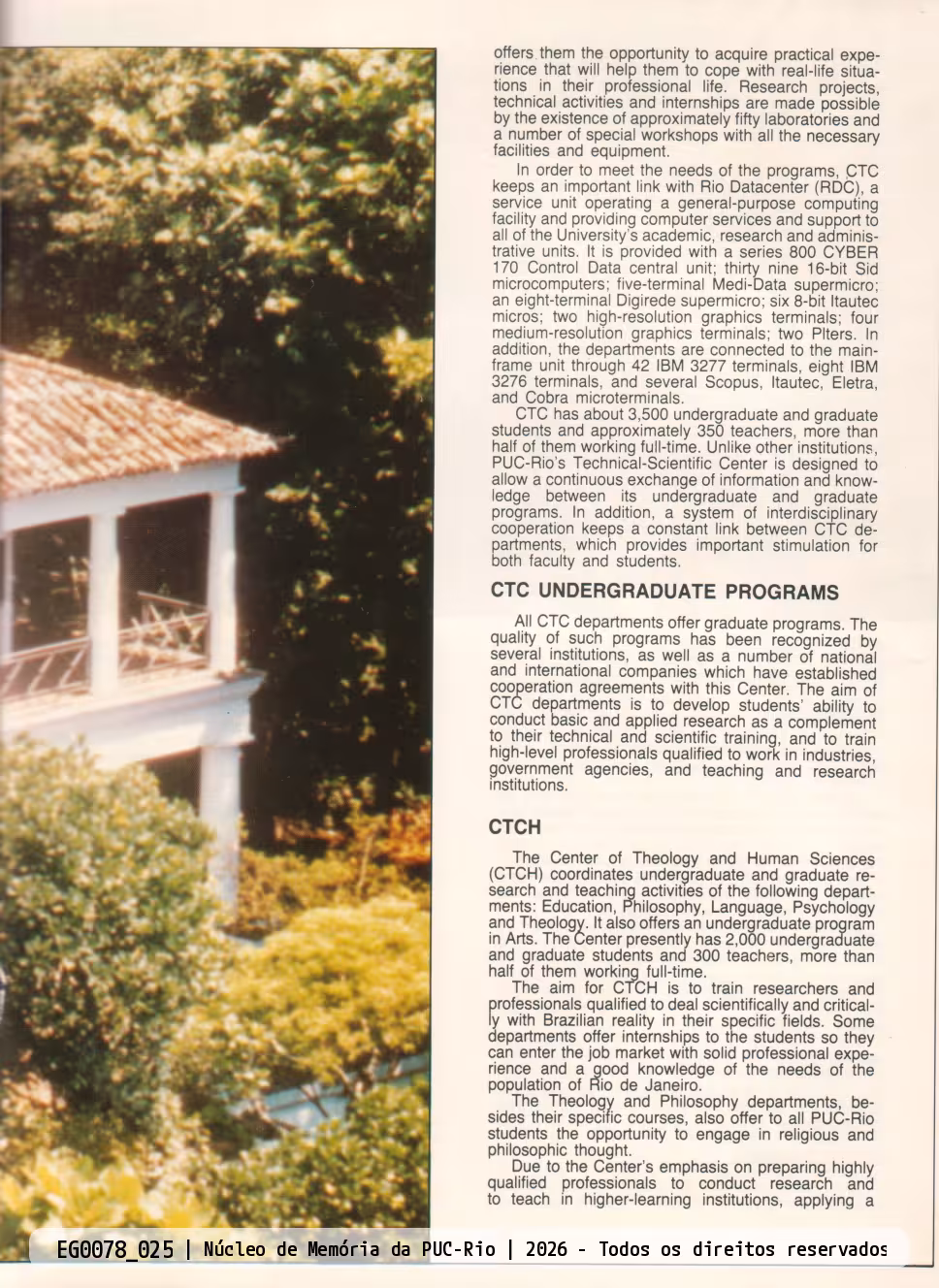 Informações sobre o CTC e o CTCH, em inglês. Foto do Solar Grandjean de Montigny, continuação da página anterior.