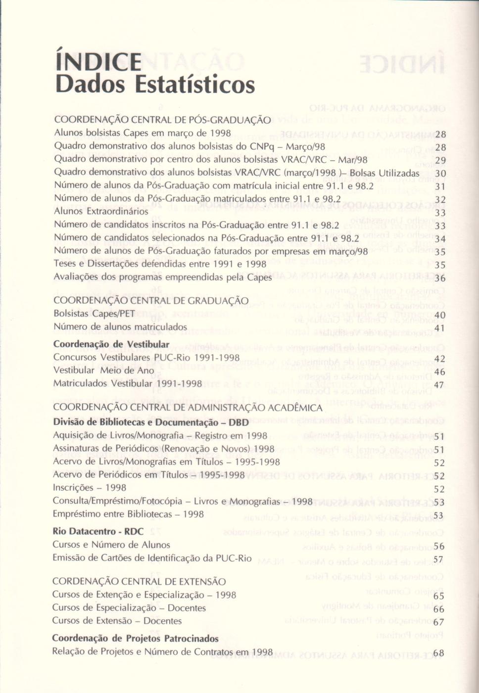 Coleção Anuário da Pontifícia Universidade Católica do Rio de Janeiro 1998 Código exclusivo eg0083_004 Data da criação Ano 1998 Data de criação Qui, 01/01/1998 - 12:00 Natureza do documento imagem Identificação Original Anuário PUC-Rio Descrição Índice - Dados Estatísticos